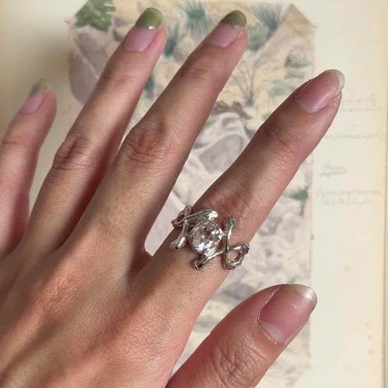 Just like waves engulfing the rocks on a beach, the Engulf ring was created to frame this subtle light pink morganite in the best way possible - soft curves surrounding the gem, which continues all the way around the band. This piece will definitely be your daily jewellery if you wish to elevate your day with a subtle sparkle that will captivate.