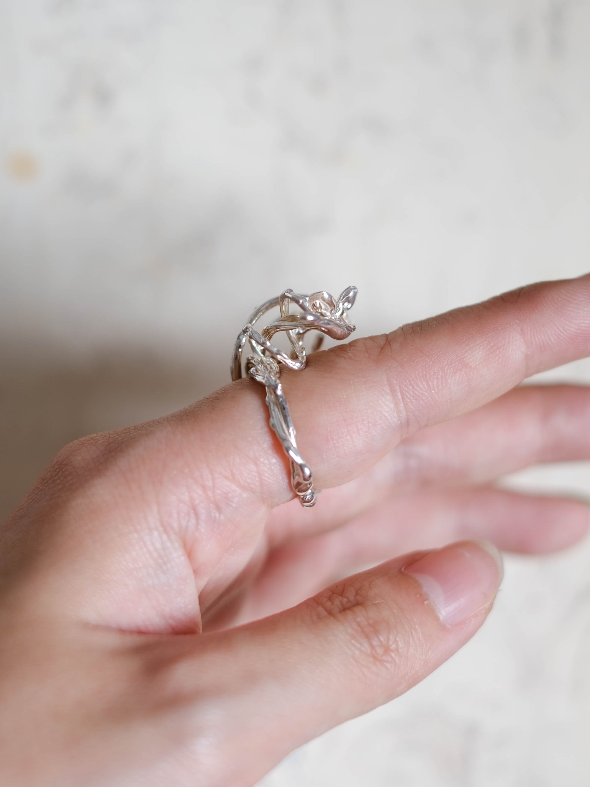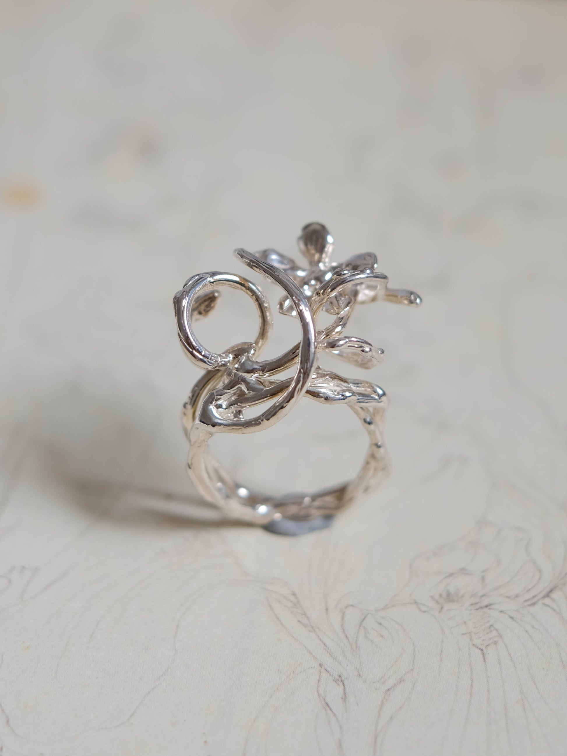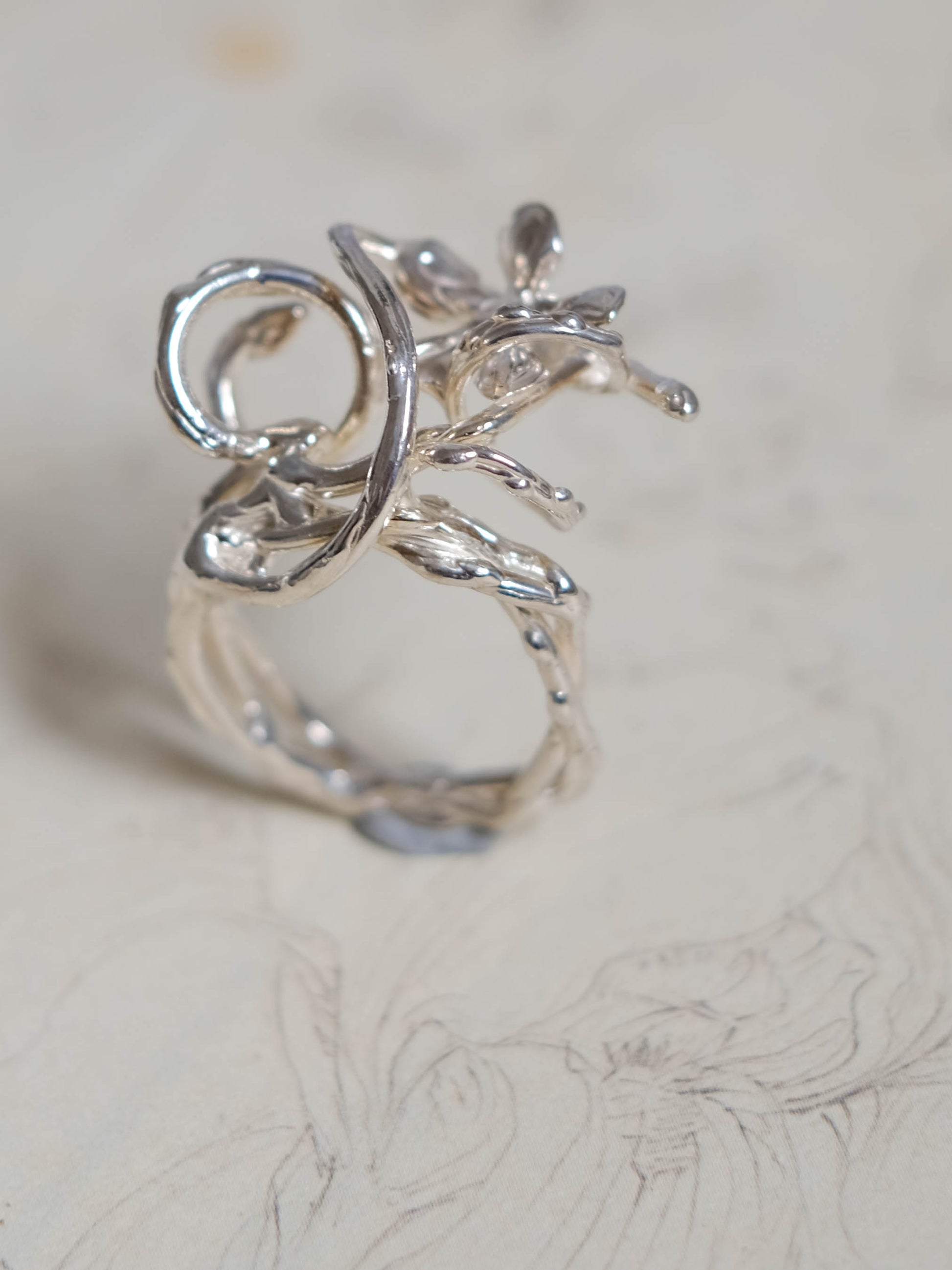 The 'From the ground' ring is one of the designs which emerged from my observations of vines and their growth patterns- how they twist and reach without hesitation, finding strength in their gentle curves as they come together, spectacularly yet effortlessly.